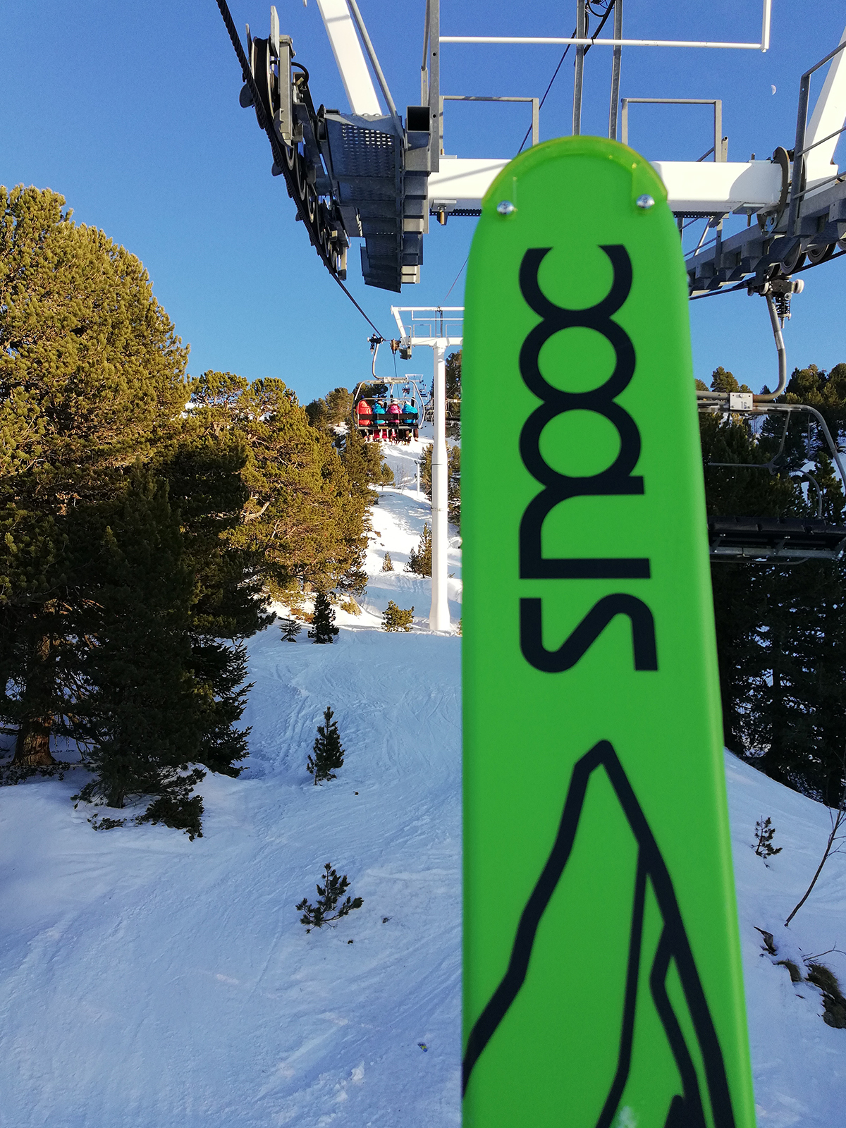 We are explained in what position to hold it on the chairlift and of course we have the strap attached for more security but it is especially at the finish where we must not fall since we do not have the skis on feet to slide. Then head for the Gaboureaux ski slope, like the chairlift, what does Gaboureaux mean?*