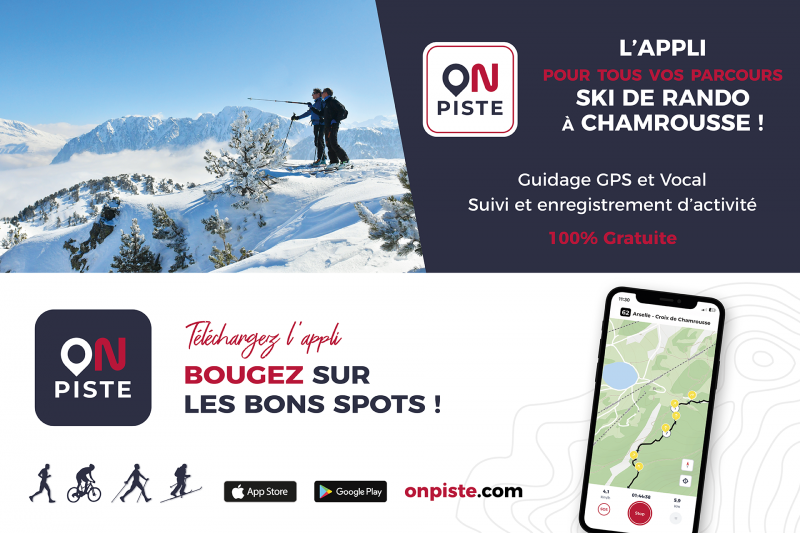 Discover the On Piste website and mobile app for your ski touring trips in Chamrousse: stay safely on the marked trail with GPS and voice guidance on the routes, or challenge yourself by tracking and recording your outdoor activity.